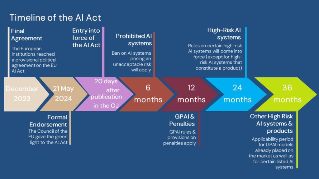 - Feb 2025 → Ban on unacceptable-risk AI begins.